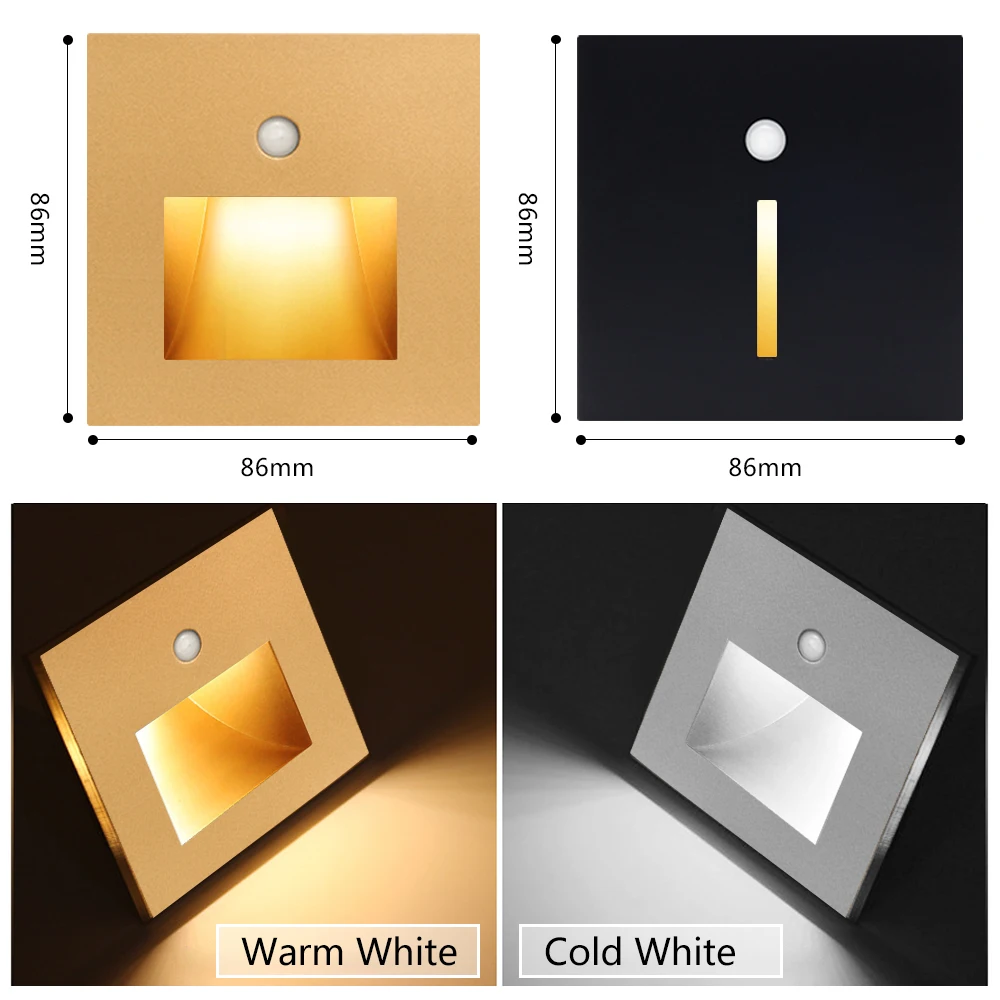 Embedded Wall Lamp AC85-265V Night Light Motion Sensor Sconce for Ladder Living Room Kitchen Indoor Staircase Luminaire